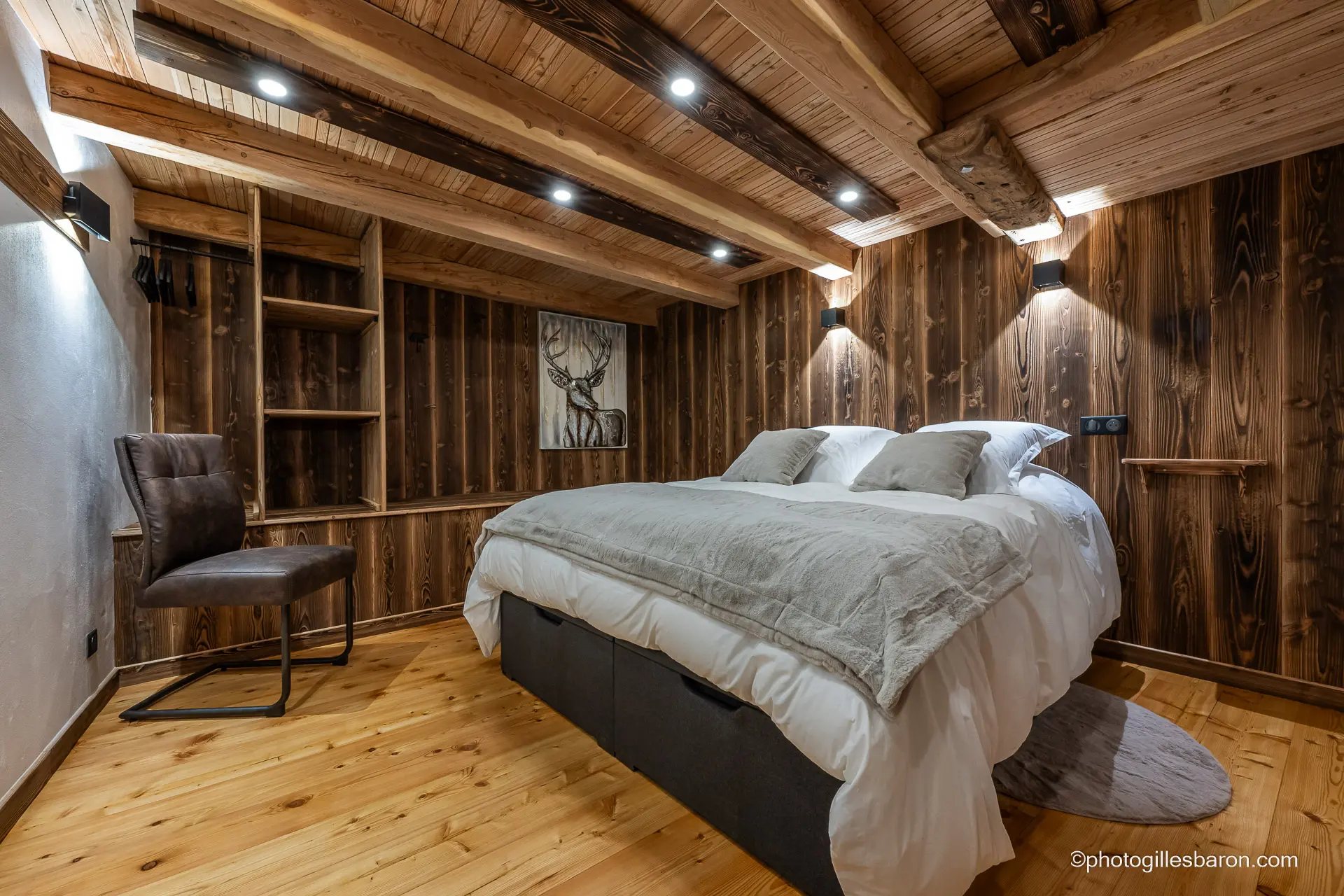 Le rez-de-chaussée du chalet est conçu pour offrir à chaque invité un maximum de confort. Vous y trouverez trois chambres, toutes équipées de literie hôtelière de qualité avec des matelas à ressort de 27 cm pour un sommeil optimal.